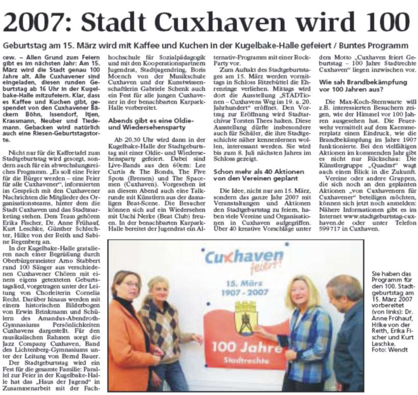Presseartikel 5.12.2006 Cuxhavener Nachrichten