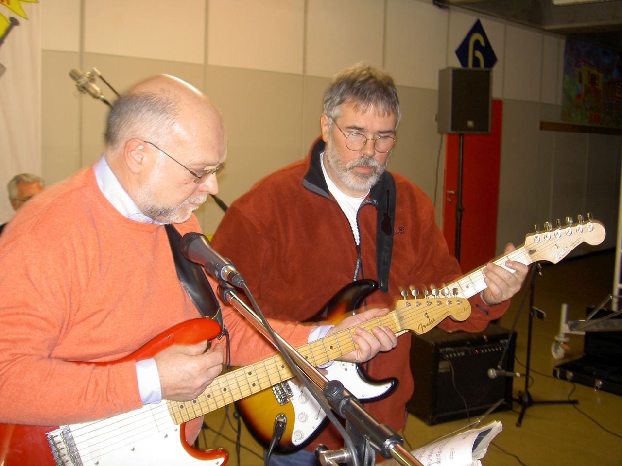 Prof. Reiner und Peter mit neuer Gitarre. Freut Euch drauf.