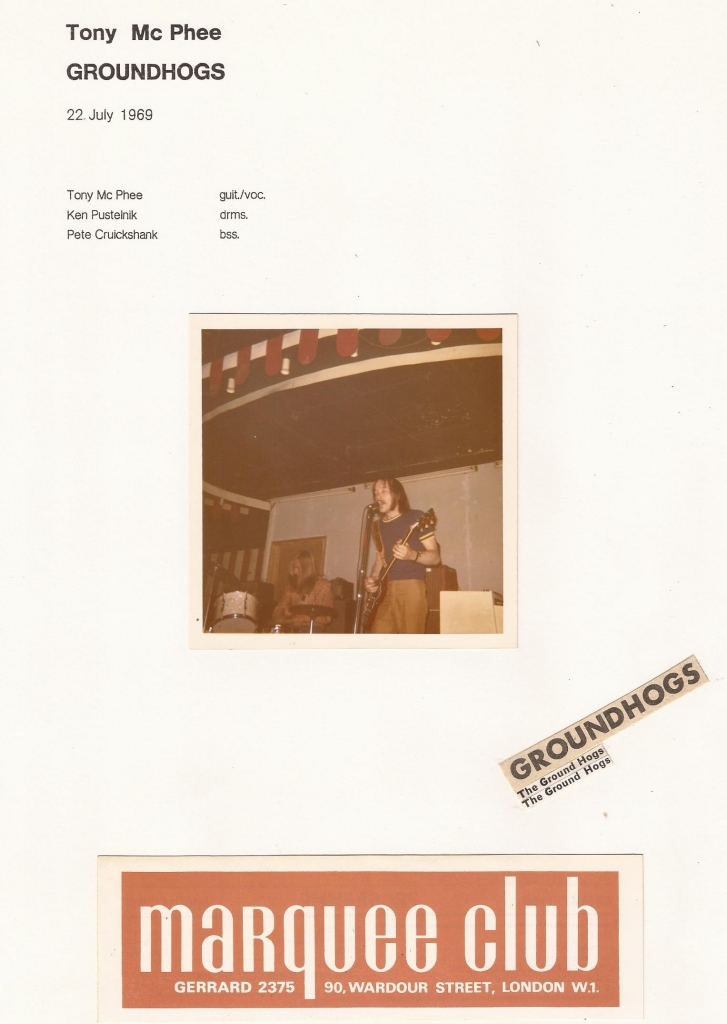 Tony McPhee`s Groundhogs war eine hervorragende Rhythm- and Blues Band; hier bei meinem MARQUEE-Besuch in London 1969. Sie traten sogar 1970 beim legendaeren Oster-Festival in Hamburg in der Ernst-Merck-Halle auf.