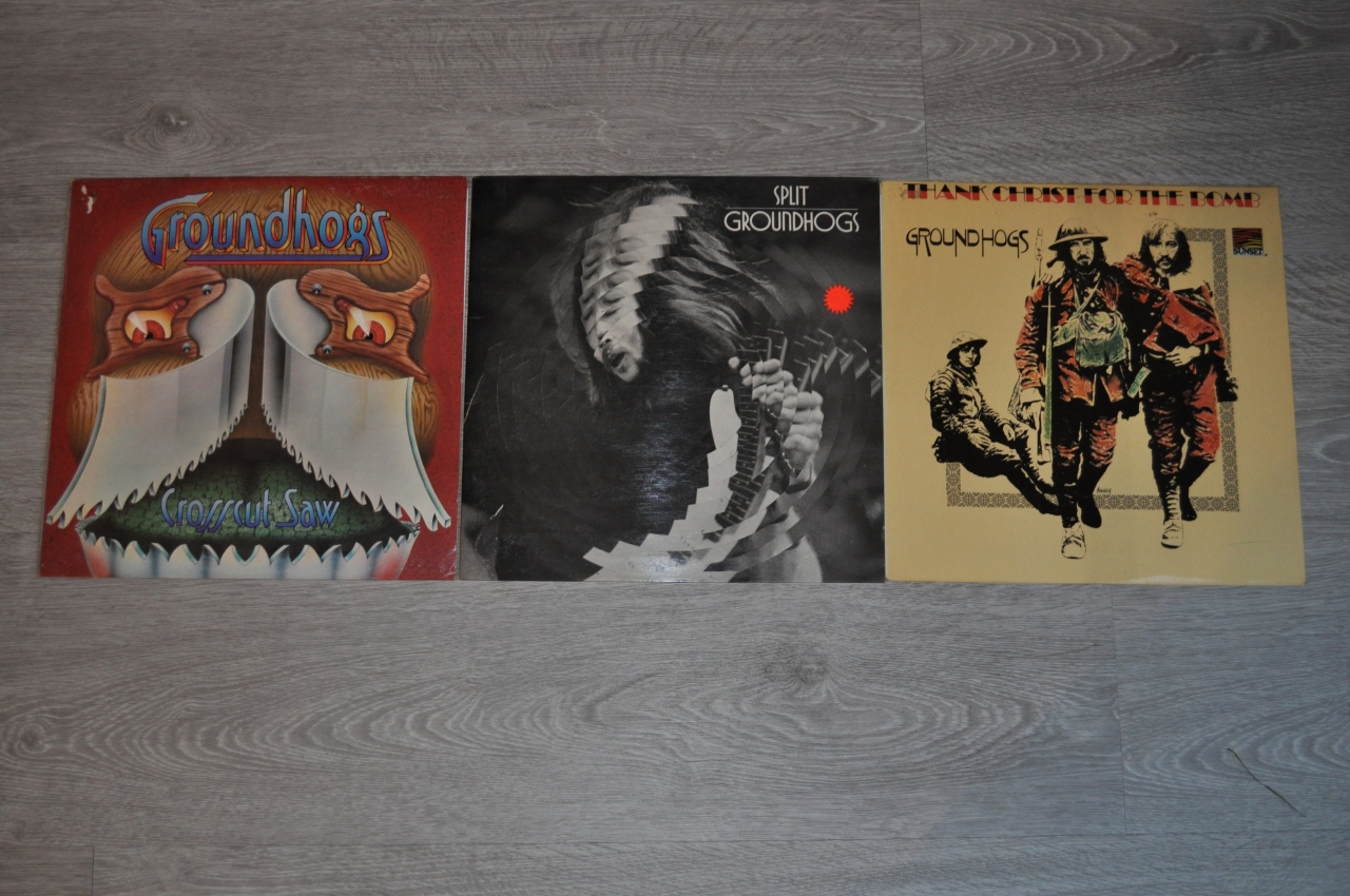 Groundhogs LPs v.l.n.r.:  Crosscut saw - 1975  /  SPLIT - 1971  /  Thank Christ for the bomb - 1970.