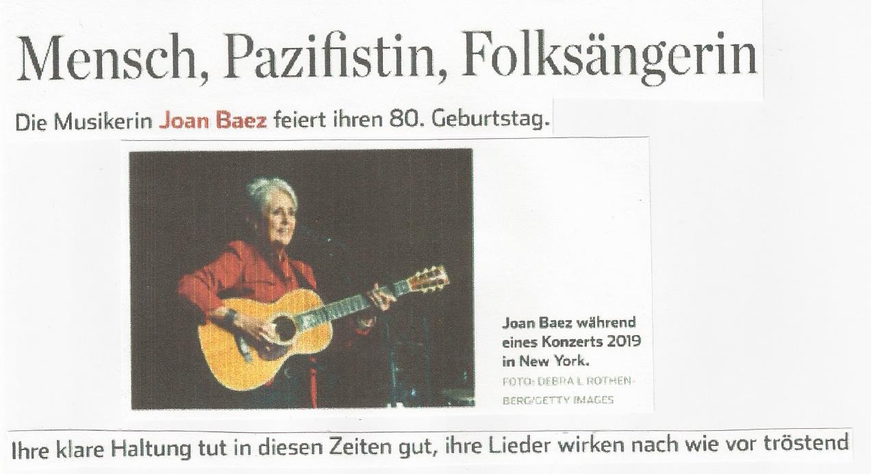 Am 09. Januar 2021 feiert Joan Baez ihren 80sten