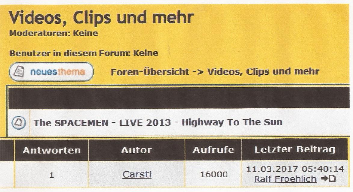 16000 Aufrufe des SPACEMEN Video-Clips!!!