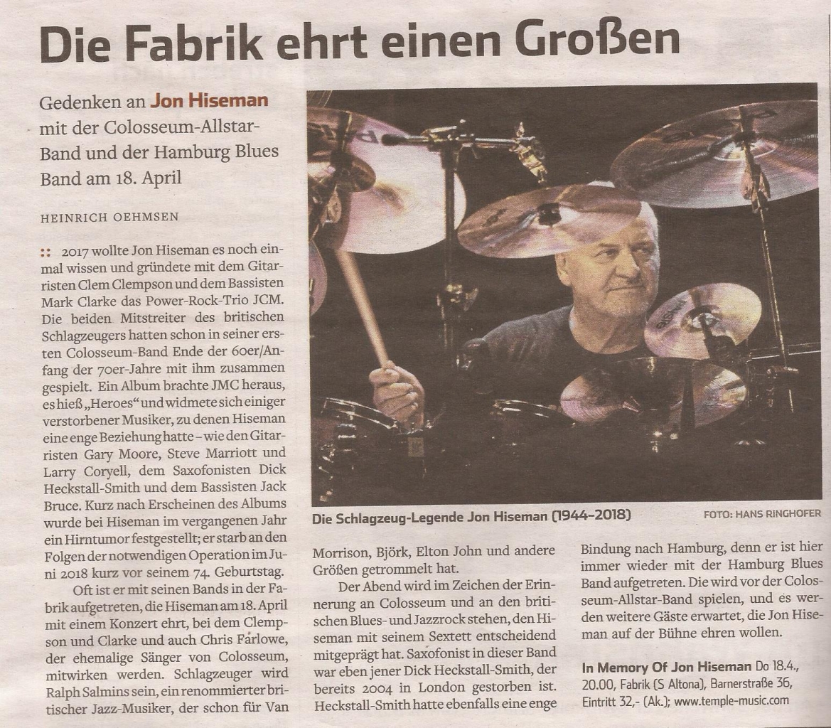 18.04.2019 06:10:34 Poster: Ralf Froehlich Bildtitel: Jon Hiseman (1944-2018) |