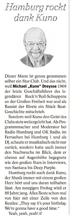 Am 18.07.2025 feiert Kuno Dreysse - ex Rivets / Star Club -