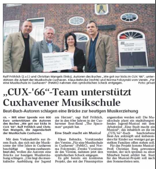 Hier nun der Zeitungsartikel über die Spendenübergabe an die Musikschule. Zwischen den Zeilen könnt ihr herauslesen dass das noch nicht das "Ende" war. Wie sagte schon Käpt`n Kopp:" Es wird noch besser! Bald geht die Sache weiter." Schön so!